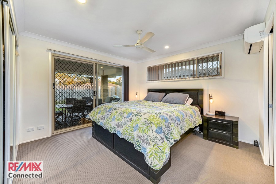 Master bedroom with ensuite - Great size with air-conditioning, ceiling fans and double built-in wardrobes with mirrored doors.