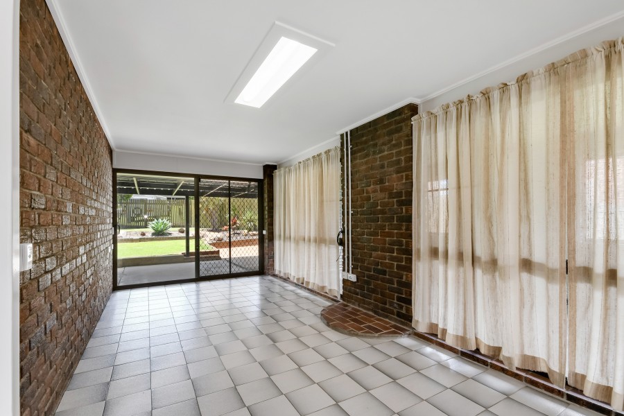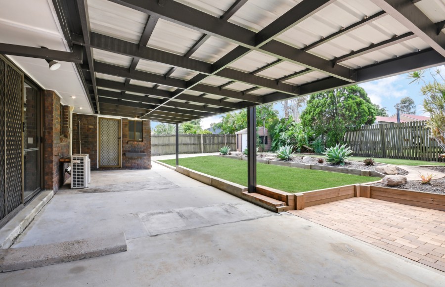 The home features three good sized bedrooms, each with built in cupboards and there is an air conditioner in the main living area. The home also has a rumpus room. The kitchen has ample storage space and an adjacent dining area. Outside you will find a covered outdoor entertaining area which overlooks a manicured back yard. The garage does have the ability to drive through to the rear of the property.