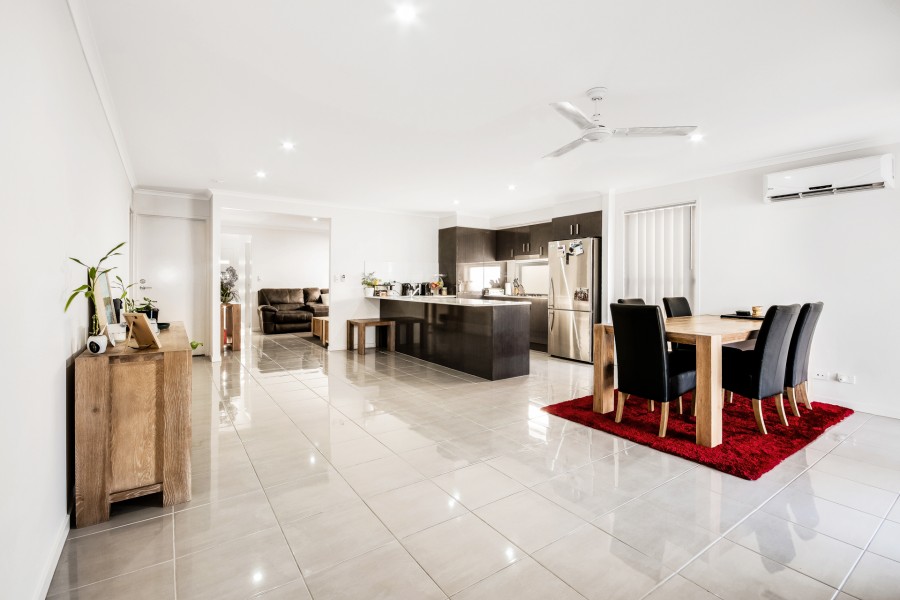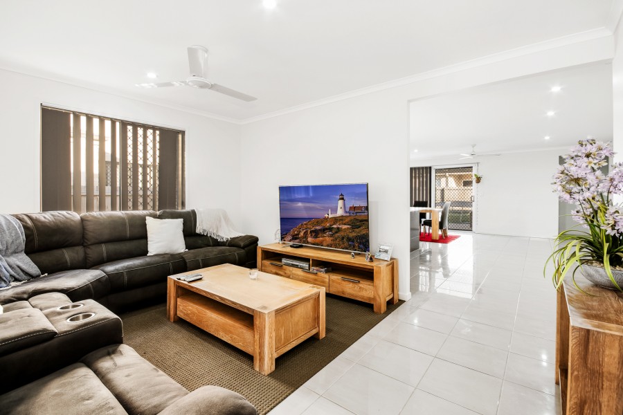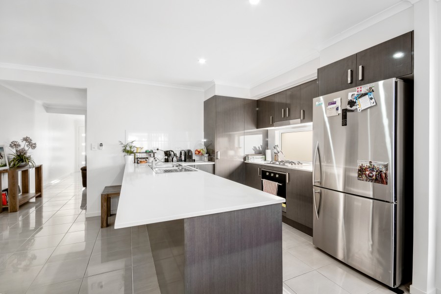 Built in 2014, this low maintenance home has all the space a young growing family desires. A tasteful street appeal announces a spacious home. On arrival from the foyer is the 4th bedroom or study Follow the tiled walkway the entire home, passing the media room, leading to the spacious open plan lounge and dining