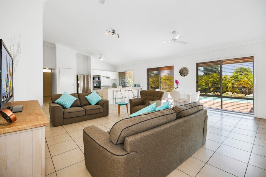 - Large open plan lounge and dining room looking out to alfresco.