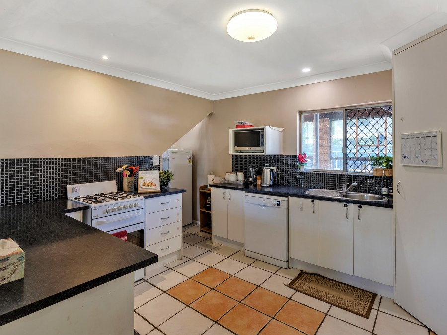 The kitchen has a dishwasher, gas stove and plenty of storage.